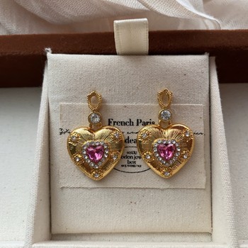 Pendientes Vintage estilo corte cobre 22K chapado en oro dulce Rosa circón corazón gota pendientes para mujeres niñas joyería