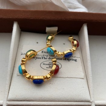 Pendientes de tuerca grandes en forma de C con piedras preciosas turquesa chapadas en oro de 22 quilates de cobre de estilo Vintage para joyería de mujer