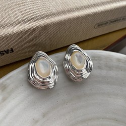 Pendientes de tuerca con forma de flor única de madreperla de pureza elegante Vintage francés para mujeres y niñas joyería