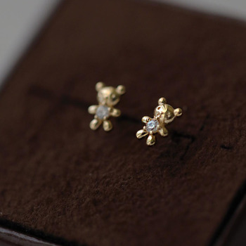 Joyería fina INS moda 14K chapado en oro puro S925 plata esterlina lindo Animal oso en forma de pendientes para mujeres niñas